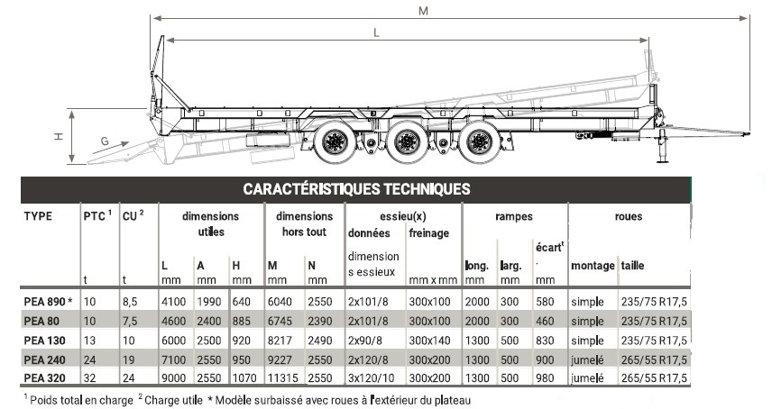 Plateau surbaissé avec roues à l'extérieur du plateau